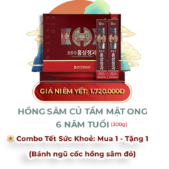 – Hồng sâm 6 năm tuổi – Mật ong Trọng lượng: 300g